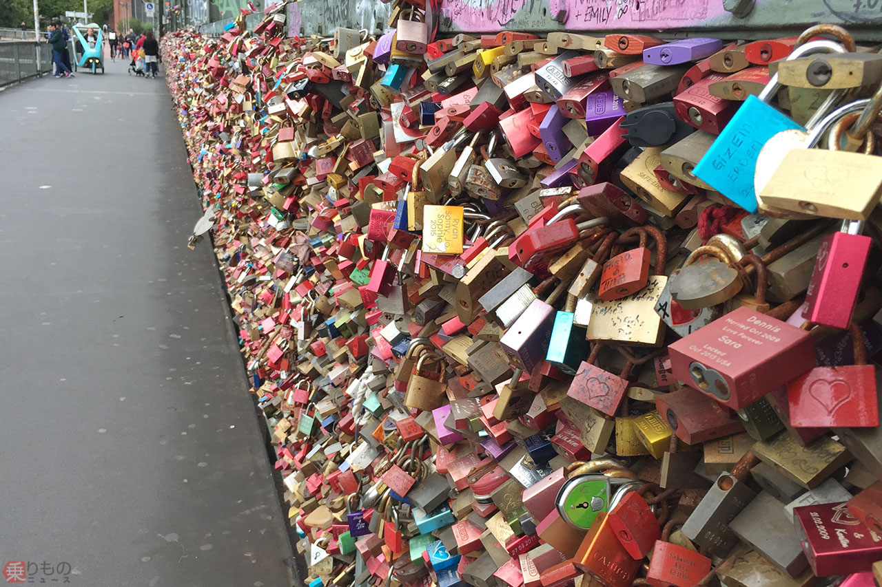 愛の証、重すぎて…恋人たちが掛けていった高速SAの「南京錠だらけの柵」撤去へ | 乗りものニュース「恋人の聖地」的な場所で見られる無数の南京錠は、カップルたちの「愛の証」として残されたものですが、安全上の問題が噴出しています。ある高速道路SAでは、自ら設置した南京錠だらけの柵を撤去することになりました。